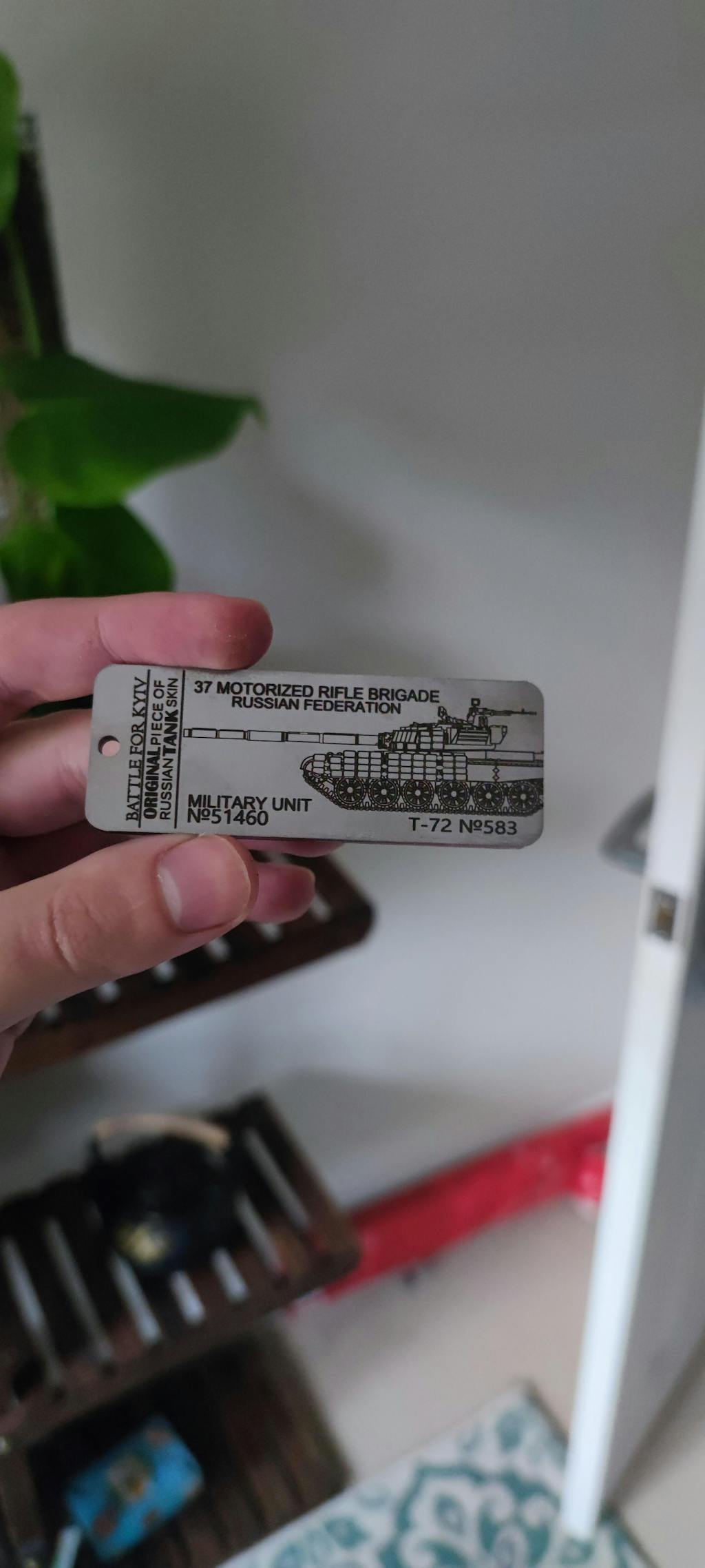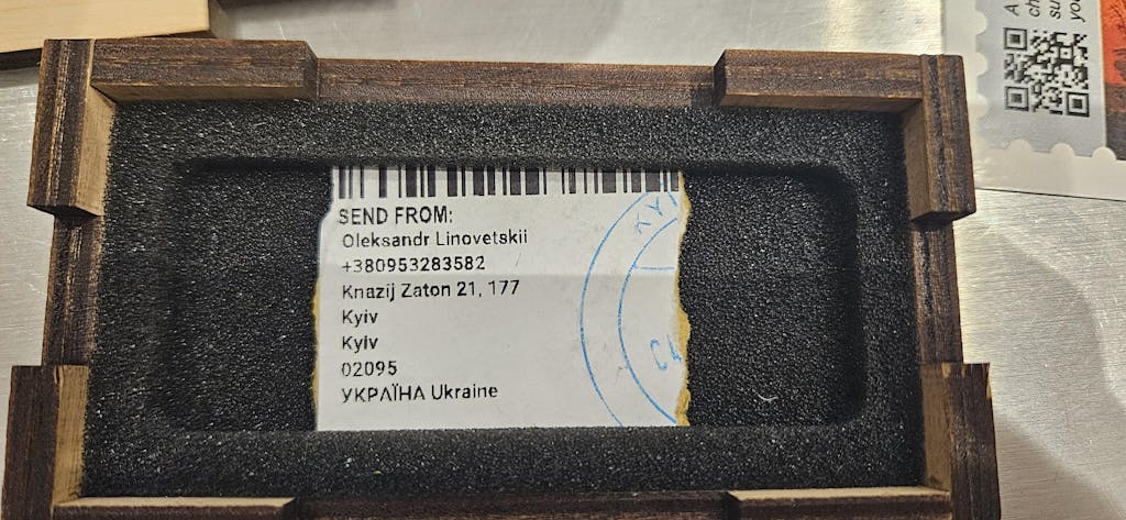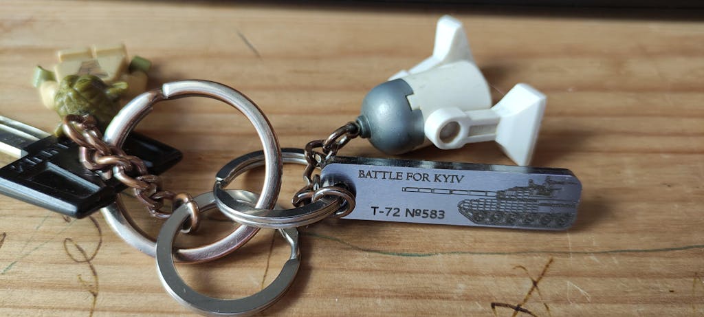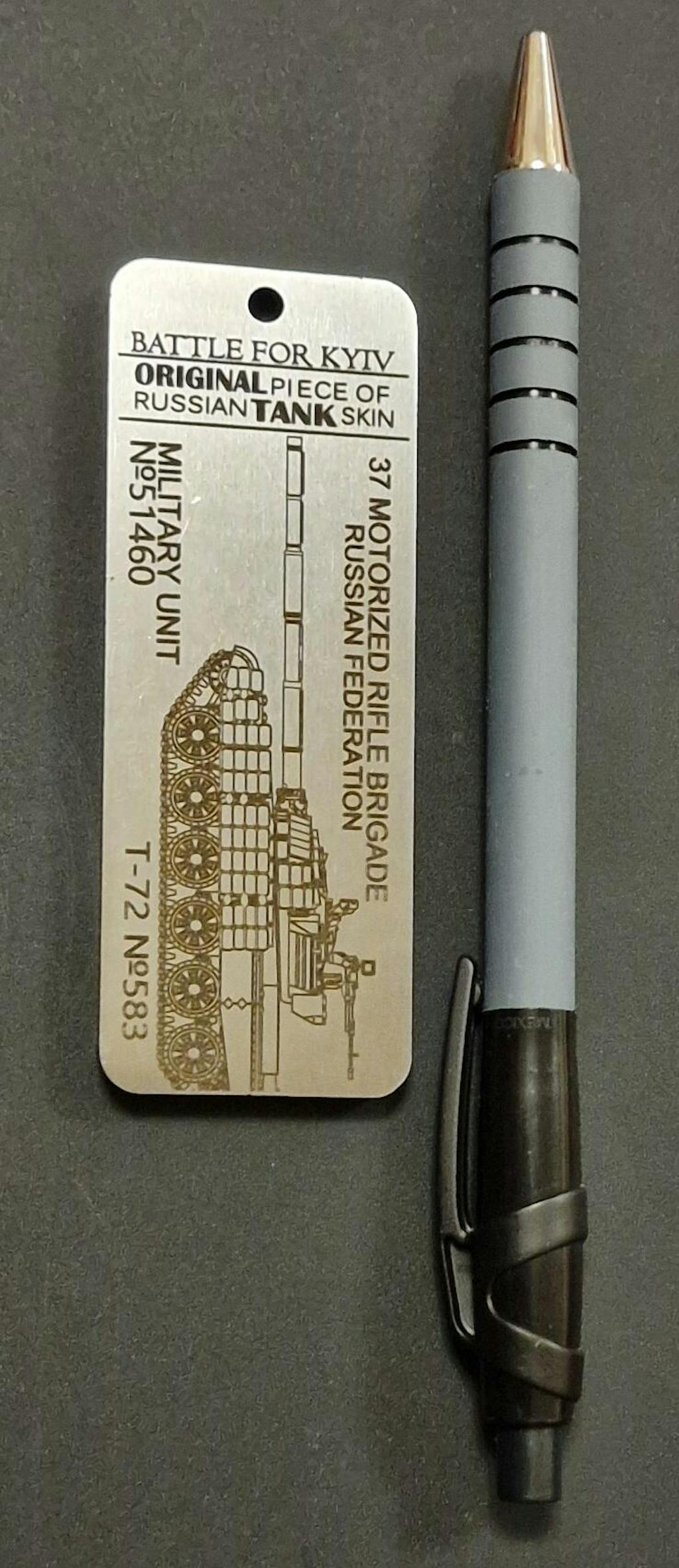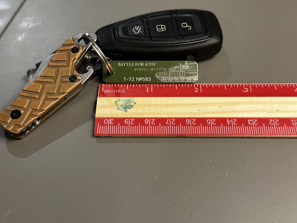 I received mine today. I’m super happy with the piece. The coating and etching are quality. It’s pleasingly heavier than you’d think a piece of metal this size should be. It’s the perfect size for my keys. Only 14 days from order for it to make it to Alabama from Kyiv.