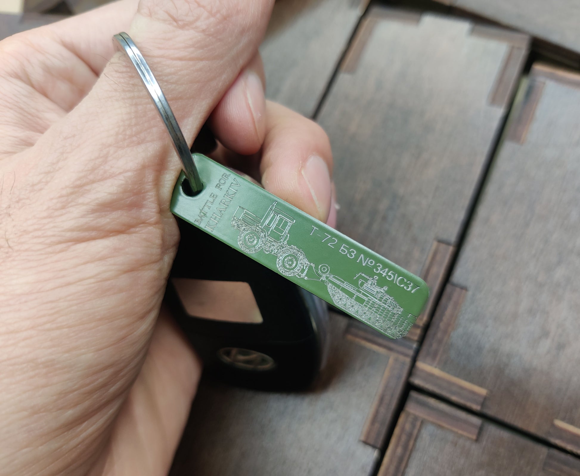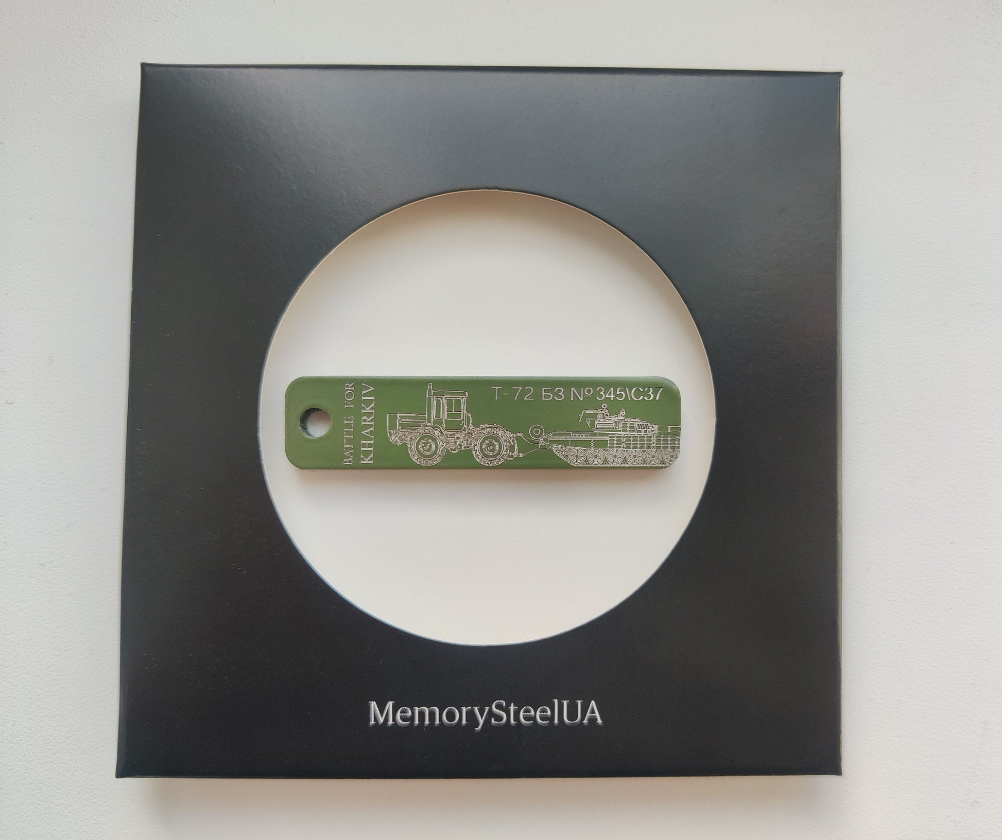Handcrafted Ukrainian Tank Keychain, Genuine Russian Tank Fragment, Sturdy Steel Gift for Men, Laser-Engraved War Trophy.