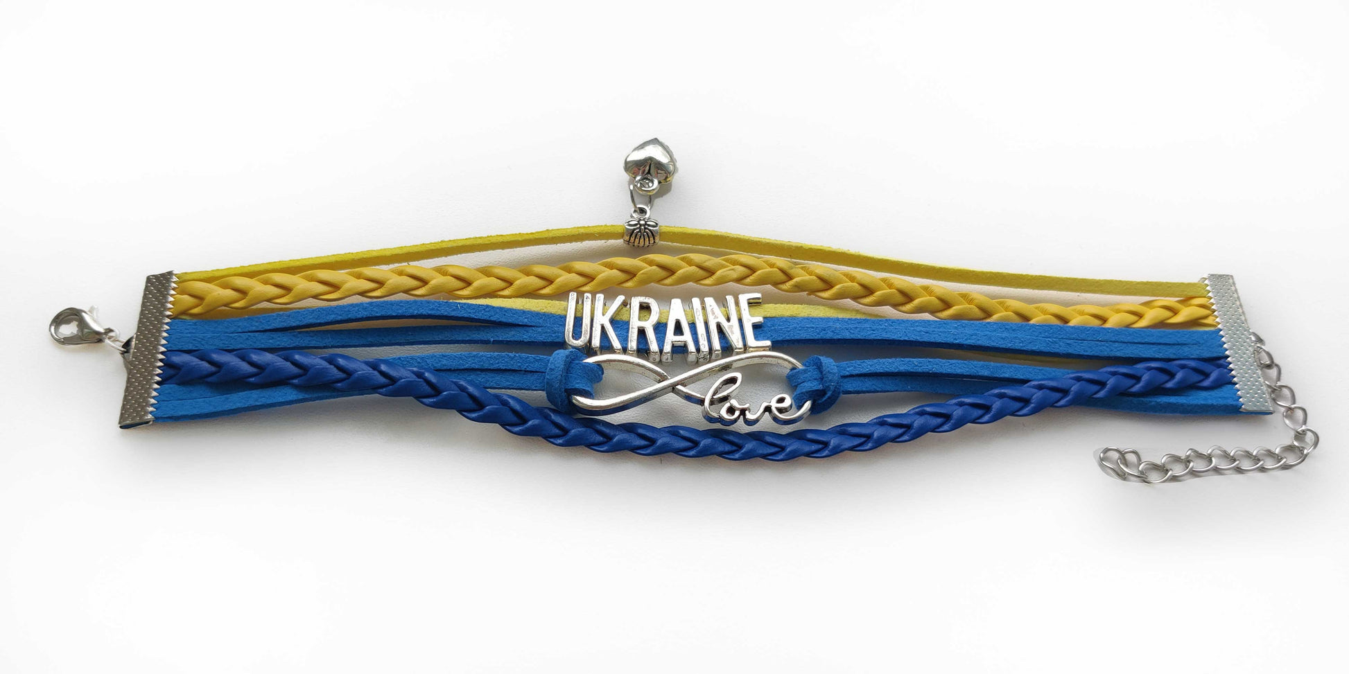 This bracelet features the vibrant blue and yellow colors of the Ukrainian flag and proudly displays the word "Ukraine." It symbolizes the resilience and bravery of the Ukrainian people in their ongoing struggle for freedom and justice.