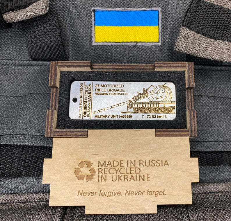 Made in russia - Recycled in Ukraine: Our Brutal Keychain for men exudes rugged charm and durability. Handcrafted from salvaged armor, each keychain is a testament to strength and resilience. With its distinctive design, including individual serial numbers and engraved Kherson motif, our keychains are more than just accessories—they're symbols of history and heritage. Perfect for adorning keys, bags, or serving as unique souvenirs, these limited-edition keychains are ideal gifts for friends, comrades, or relatives. Whether it's for a milestone birthday, a motorcycle enthusiast, or someone who appreciates custom-made accessories, our keychains are sure to impress.