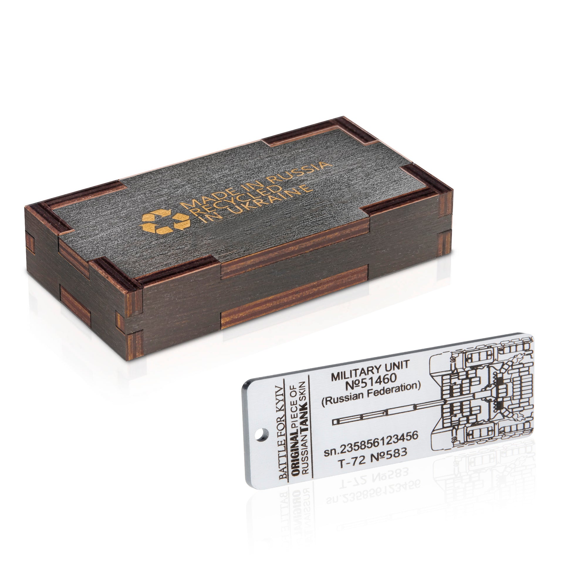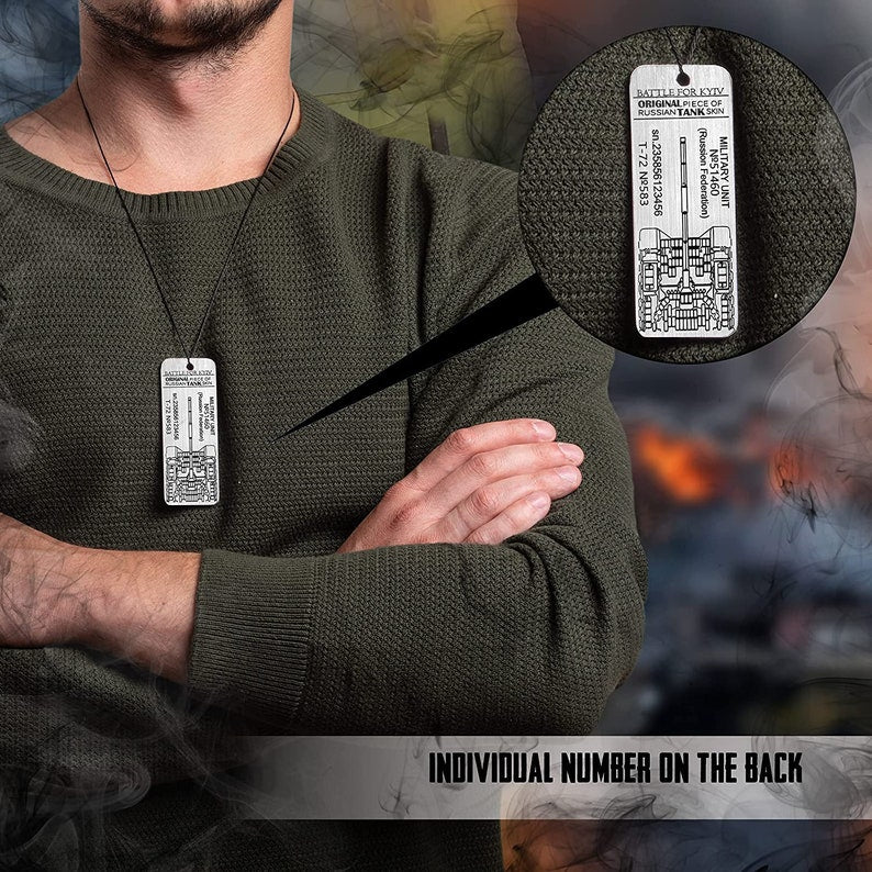 Made in russia - Recycled in Ukraine - Collectible Men's Keychain Transform a piece of Russian panzer armor into a timeless keychain. Engraved with a distinctive tank image and an individual serial number, it's a unique and durable accessory. This keychain is more than a practical item; it's a symbol of history and strength. Ideal for milestone birthdays, historical buffs, or as a personalized keepsake.