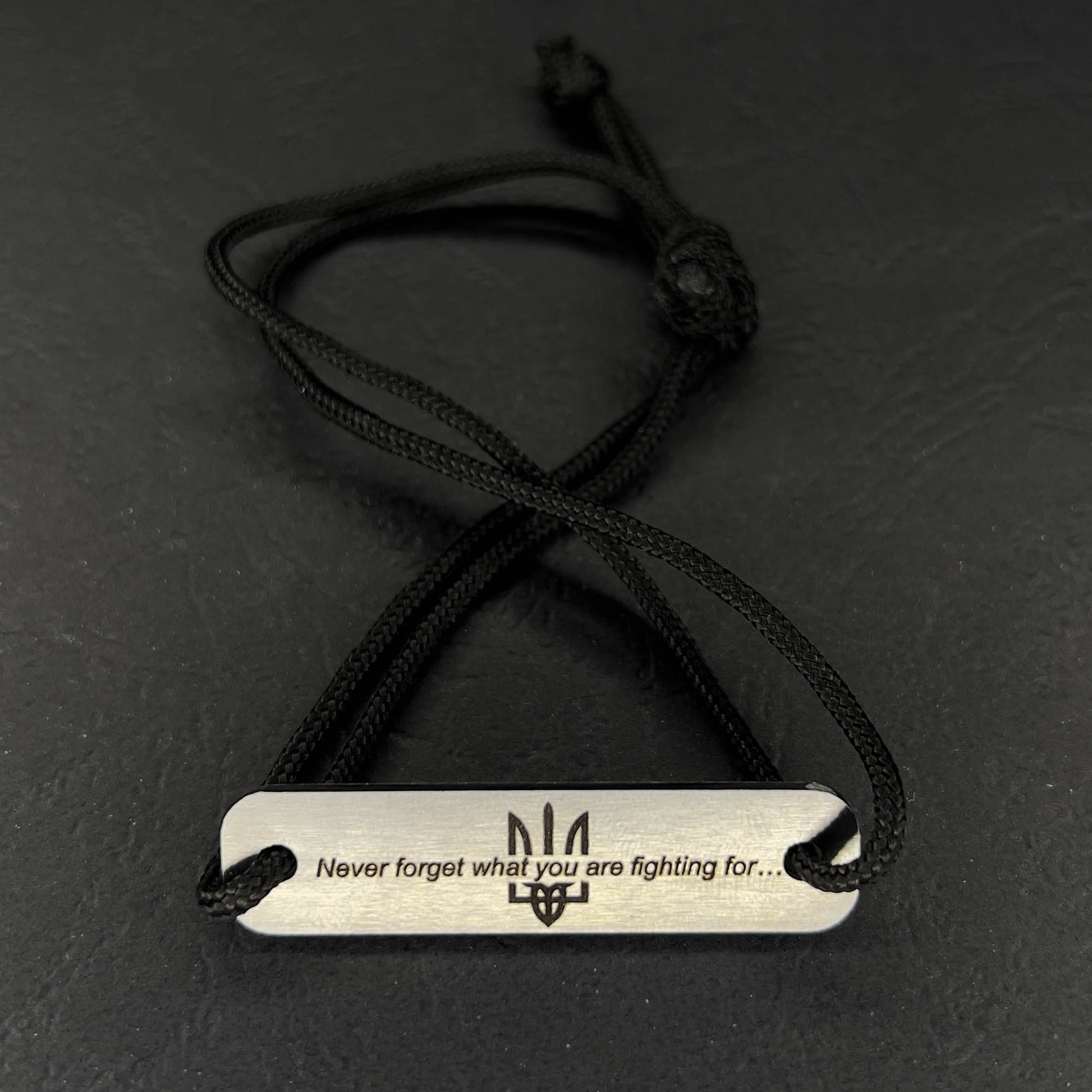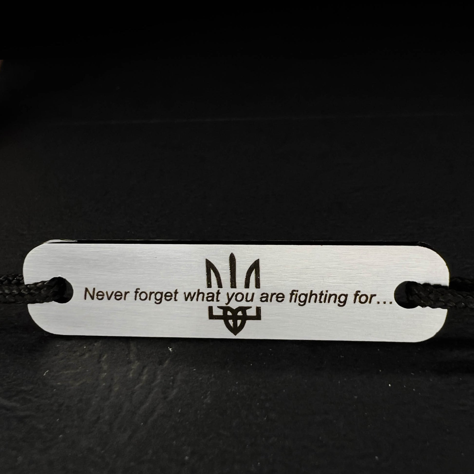 Our brutal mens bracelet has a limited quantity because it is made of a piece of russian burned tank armor, engraved motivation text on the bracelet. Because of armored steel's natural strength and durability, our unique bracelet will last a lifetime!