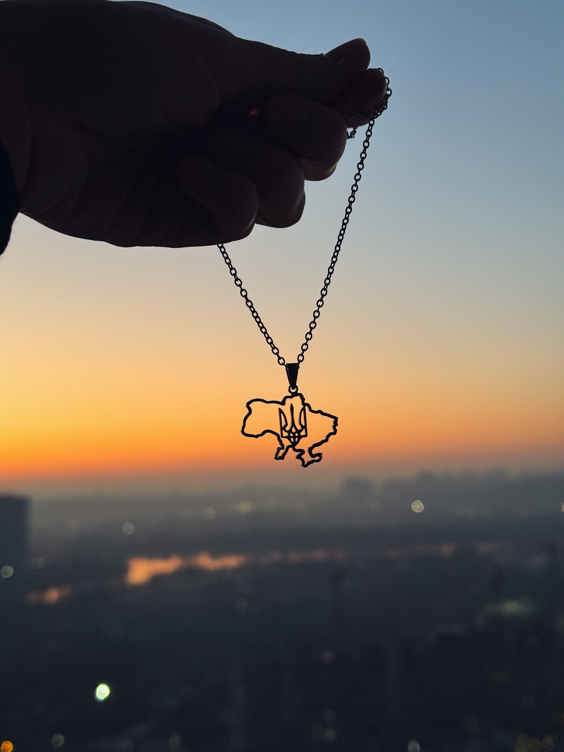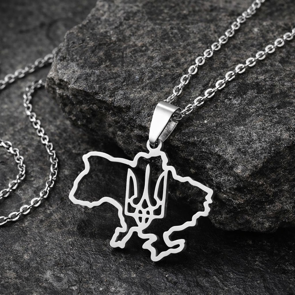 This minimalist necklace features the outline of Ukraine combined with the Trident (Tryzub) — a powerful and timeless emblem of identity, unity, and resilience.