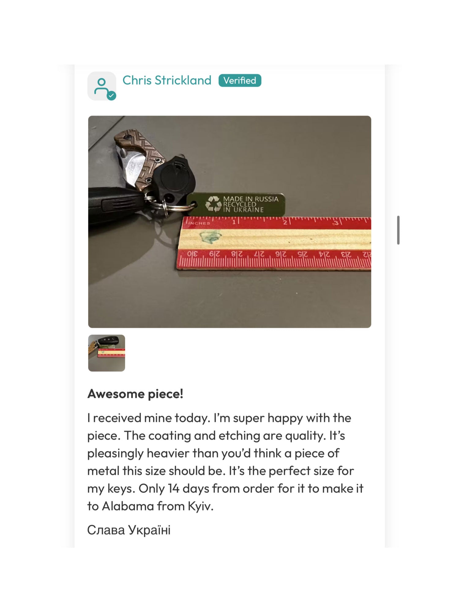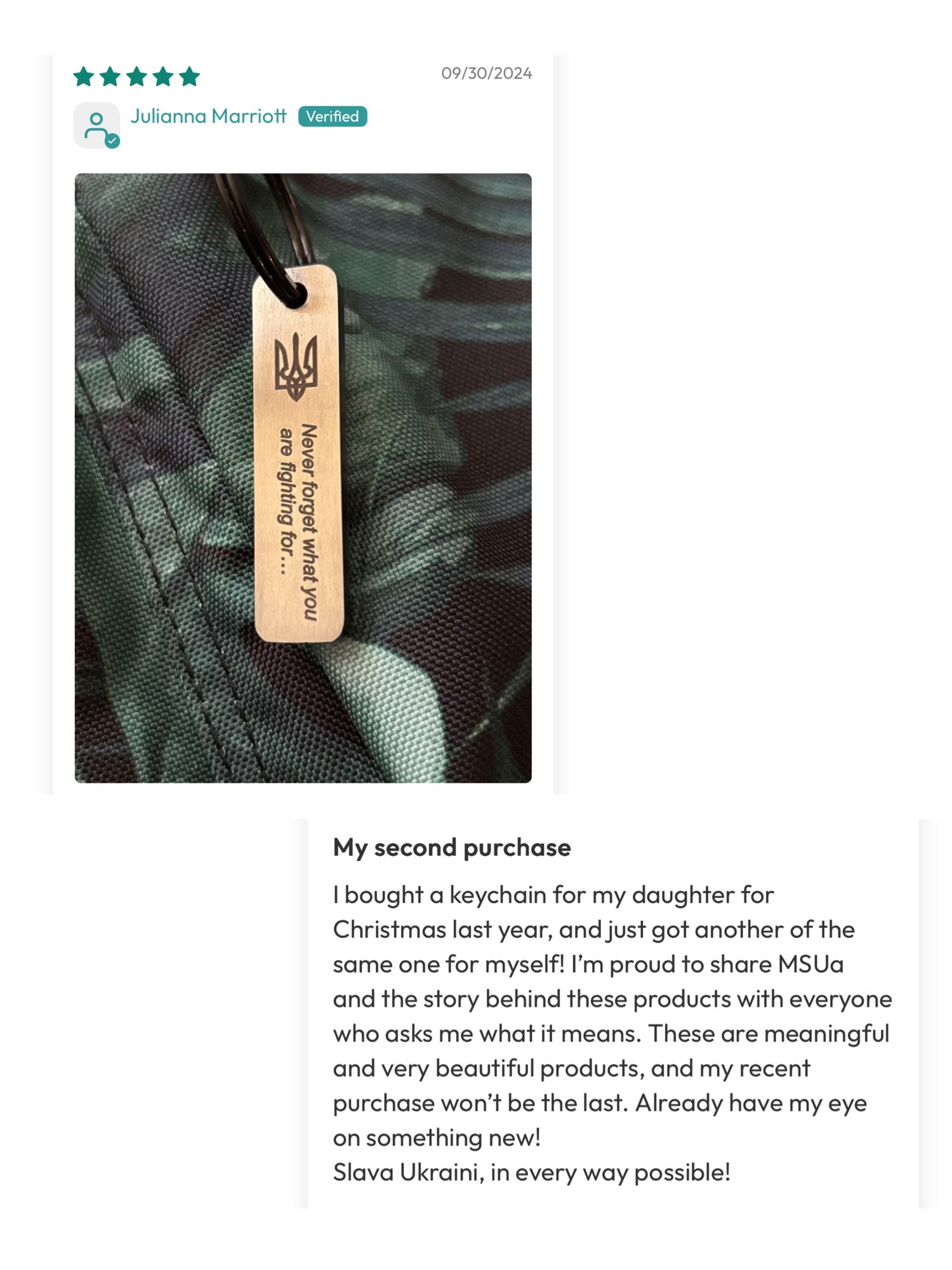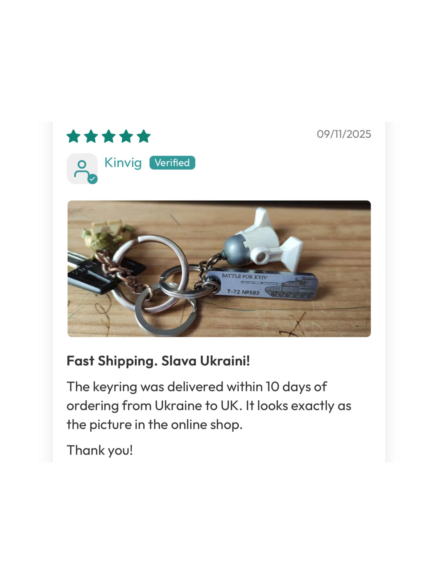 Our keychains are handcrafted in Ukraine from real deactivated cartridges — engraved, assembled, and packed by hand. We believe in transforming ordinary metal into something meaningful — a symbol of resilience, remembrance, and pride.