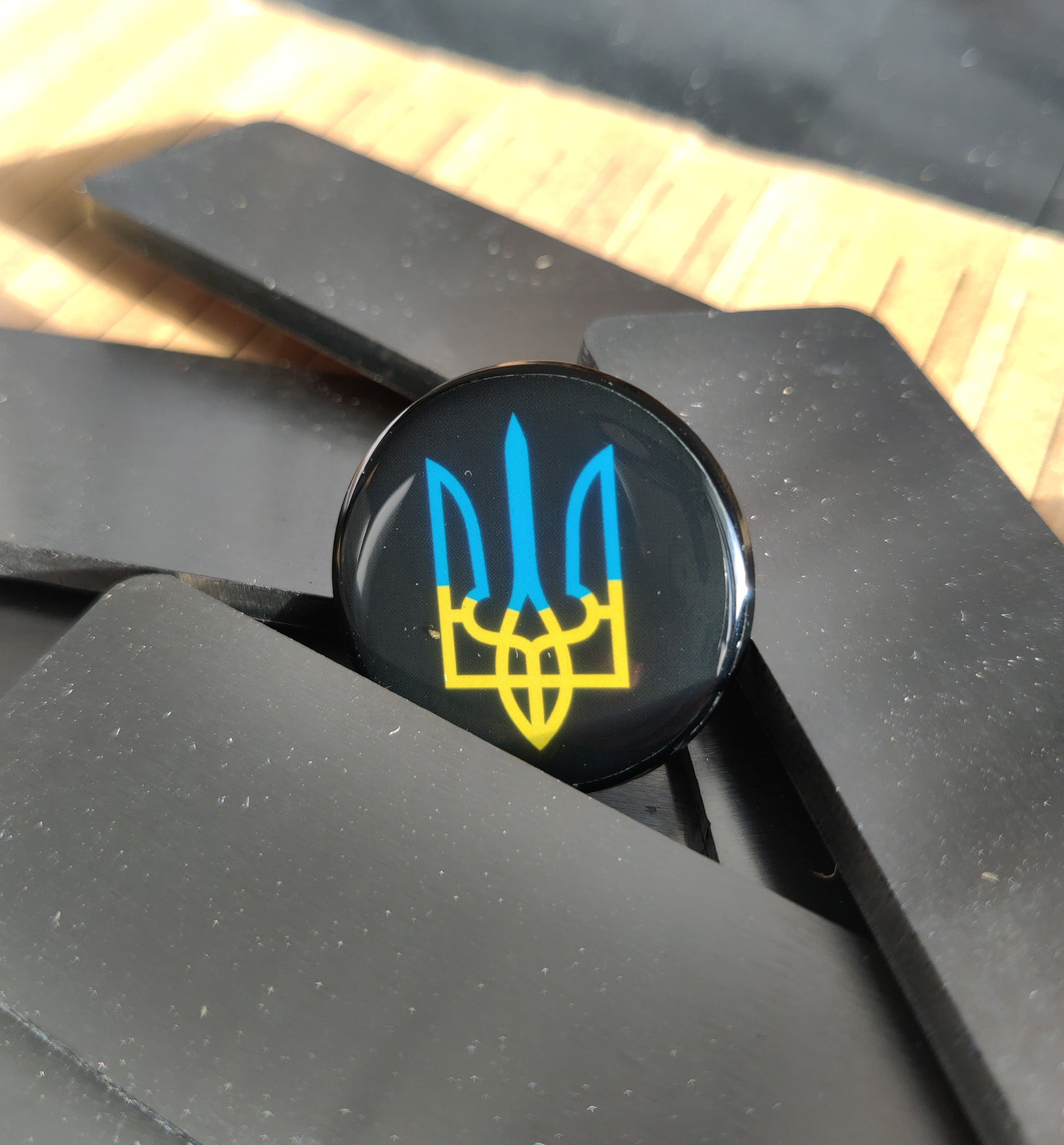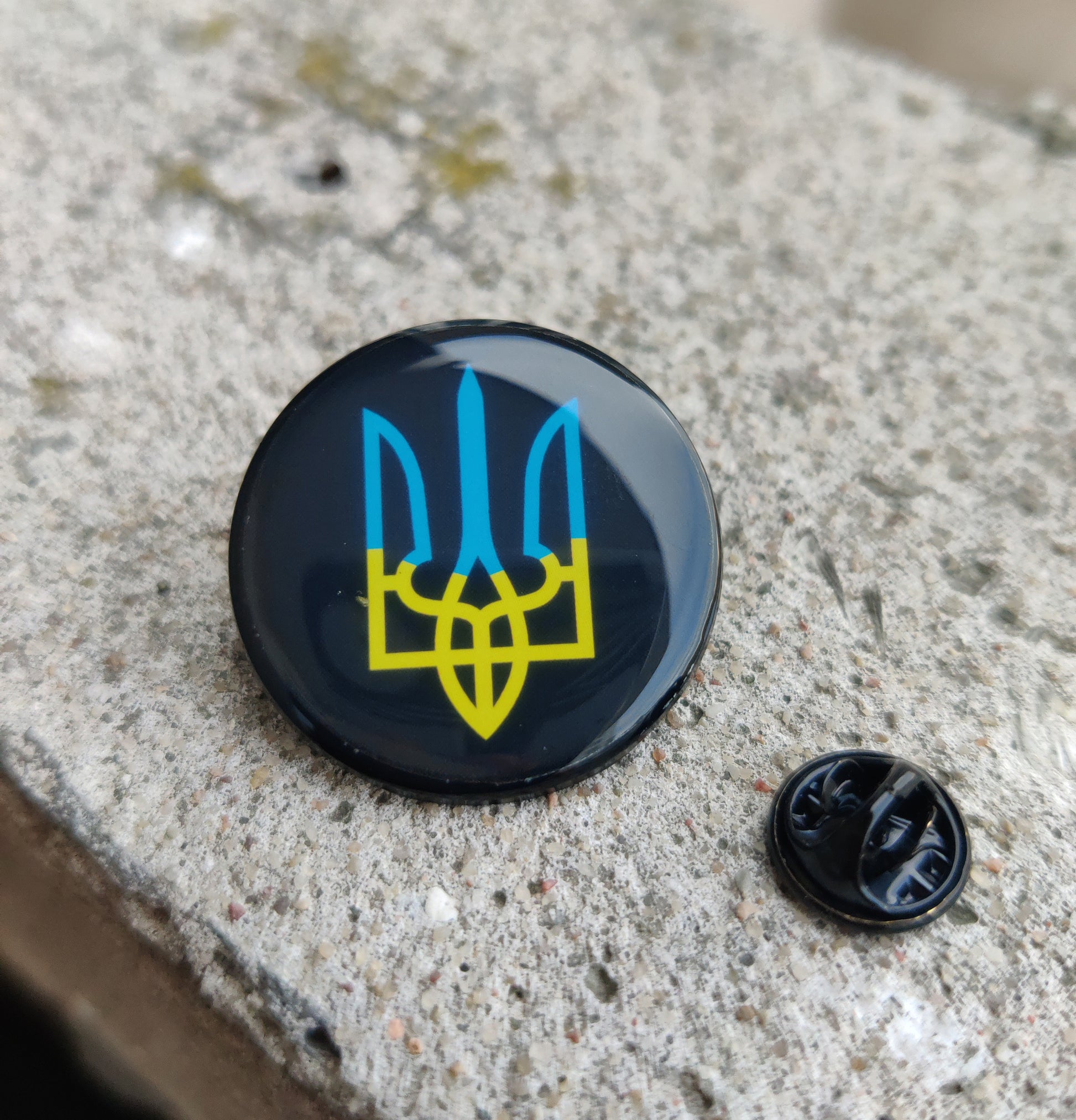 Ukrainian Trident Pin, Round Black Metal Pin